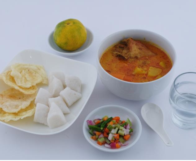 - Sajikan lontong dan siram dengan ayam dan kuah kare